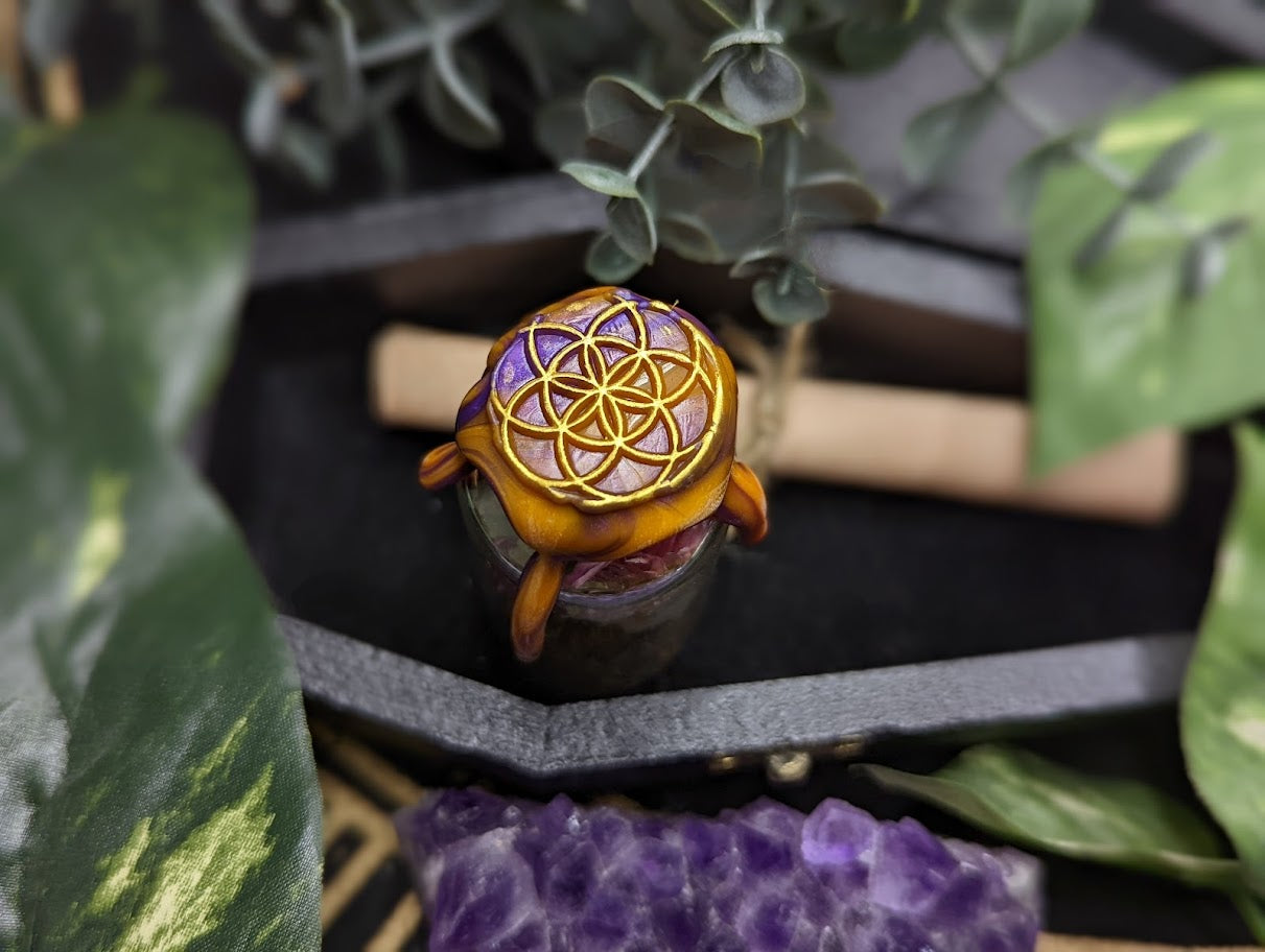 This is a handmade spell jar with a wax seal to help spark creativity and ambition in your endeavors. It was made according to a blend of old and new rituals, with the utmost care and intention.