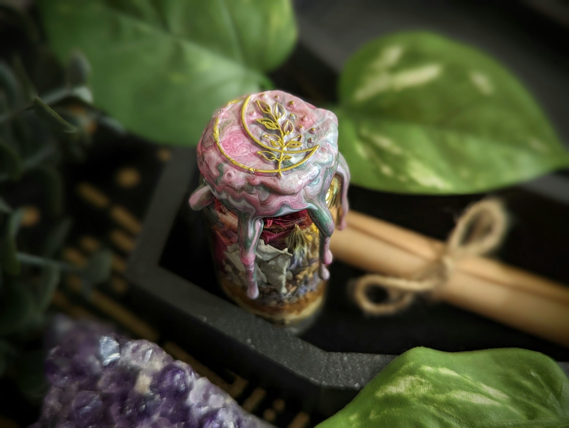 You must leave a comment at checkout with the intentions you need for this spell jar. Wax colors will be chosen according to intention. If I do not receive this information within 24 hours, I will send a spell jar of my choosing.