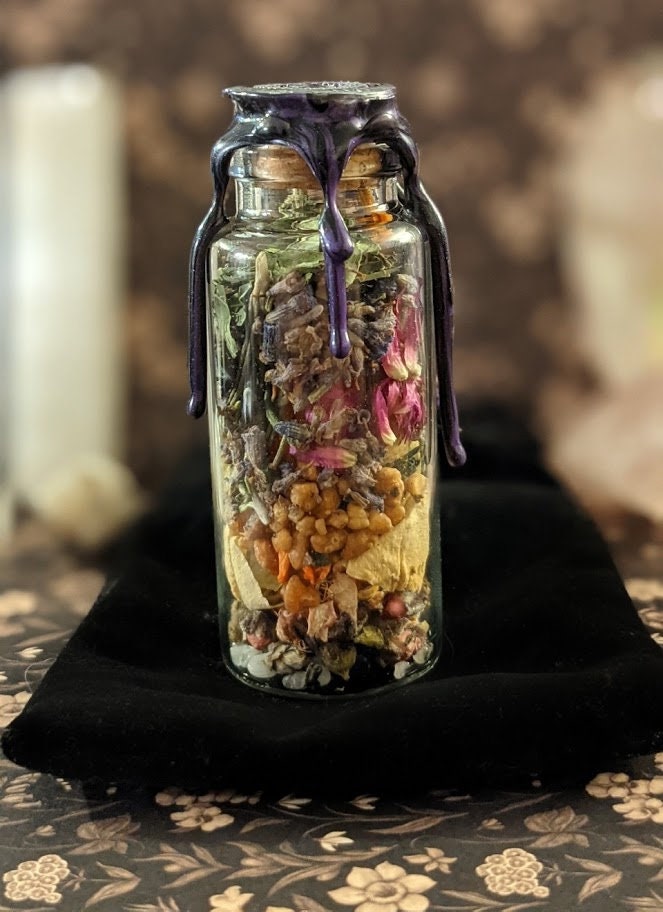 - Since every spell jar is handmade from natural ingredients, and custom ones are often kept private, note that each one will look different and unique, and will not look like the photos! These photos are just for reference. Colors vary depending on the intention.