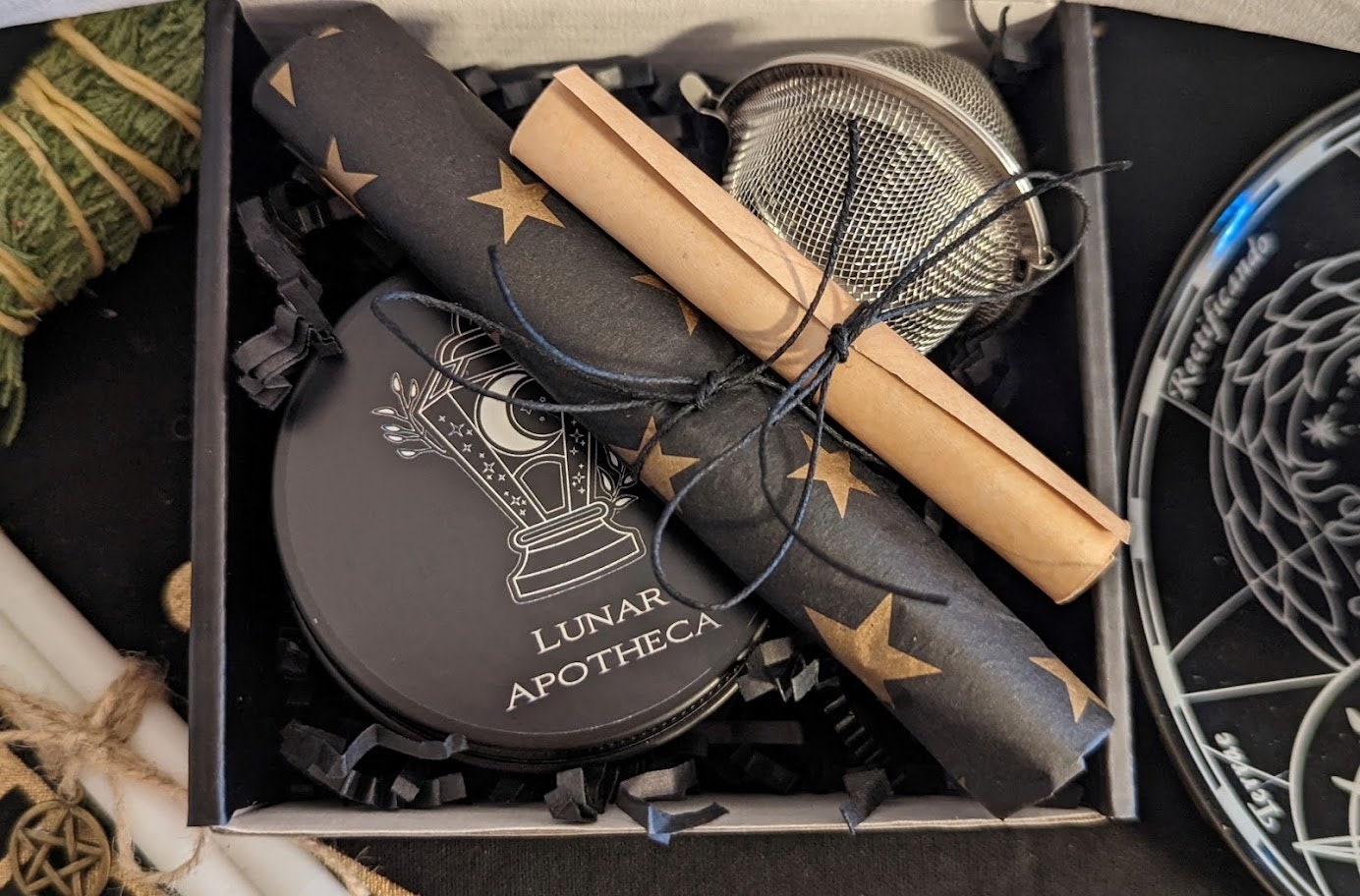 This gift set includes one tin of loose leaf TranquiliTea (enough for approx. 10 servings); a crystal spoon of your choosing; and a metal tea diffuser.